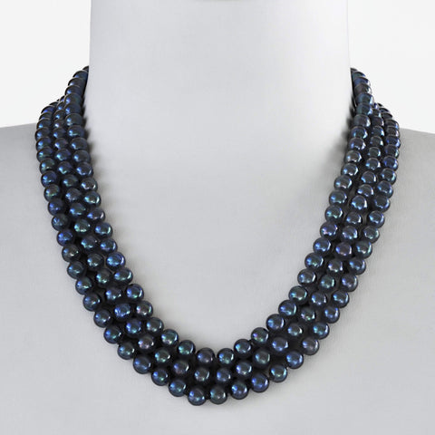 Collier 3 rangs Elizabeth (7mm) - Nuit boréale