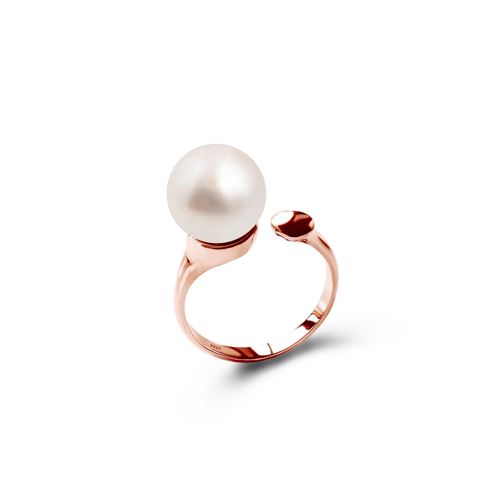 Bague  Impériale Perles de Culture d'Eau Douce taille perle blanche 11 mm sur anneau Argent 925  Plaqué Or Rose Taille Ajustable