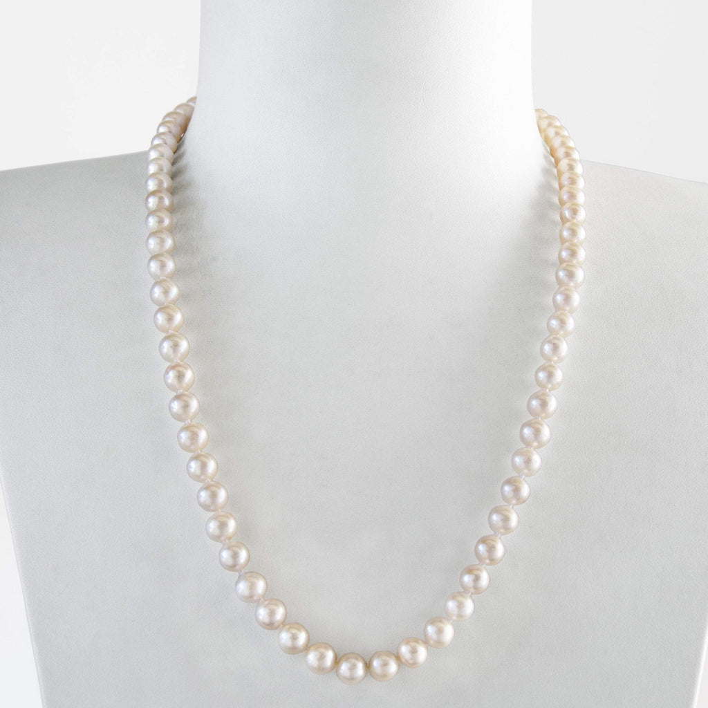 Collier longueur 53cm Perles de Culture d'Eau Douce blanches montées avec un nœud entre chaque perle fermoir en  Argent 925