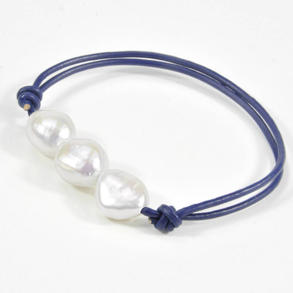 Collar y pulsera "Boheme" de cuero Ocean Blue - Nieve