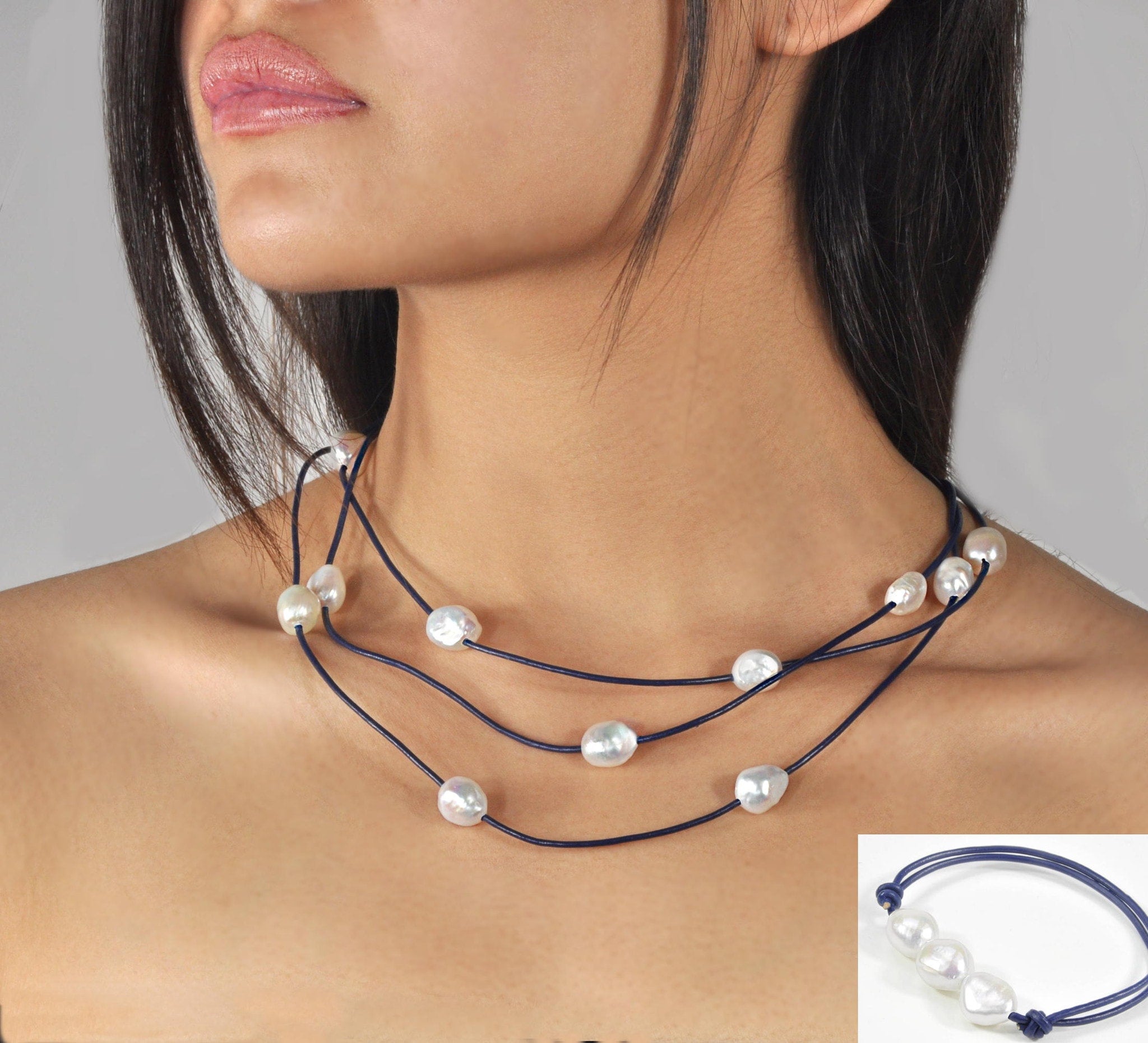 Diseño: Pulsera Collar largo + "Boheme" de cuero Ocean Blue