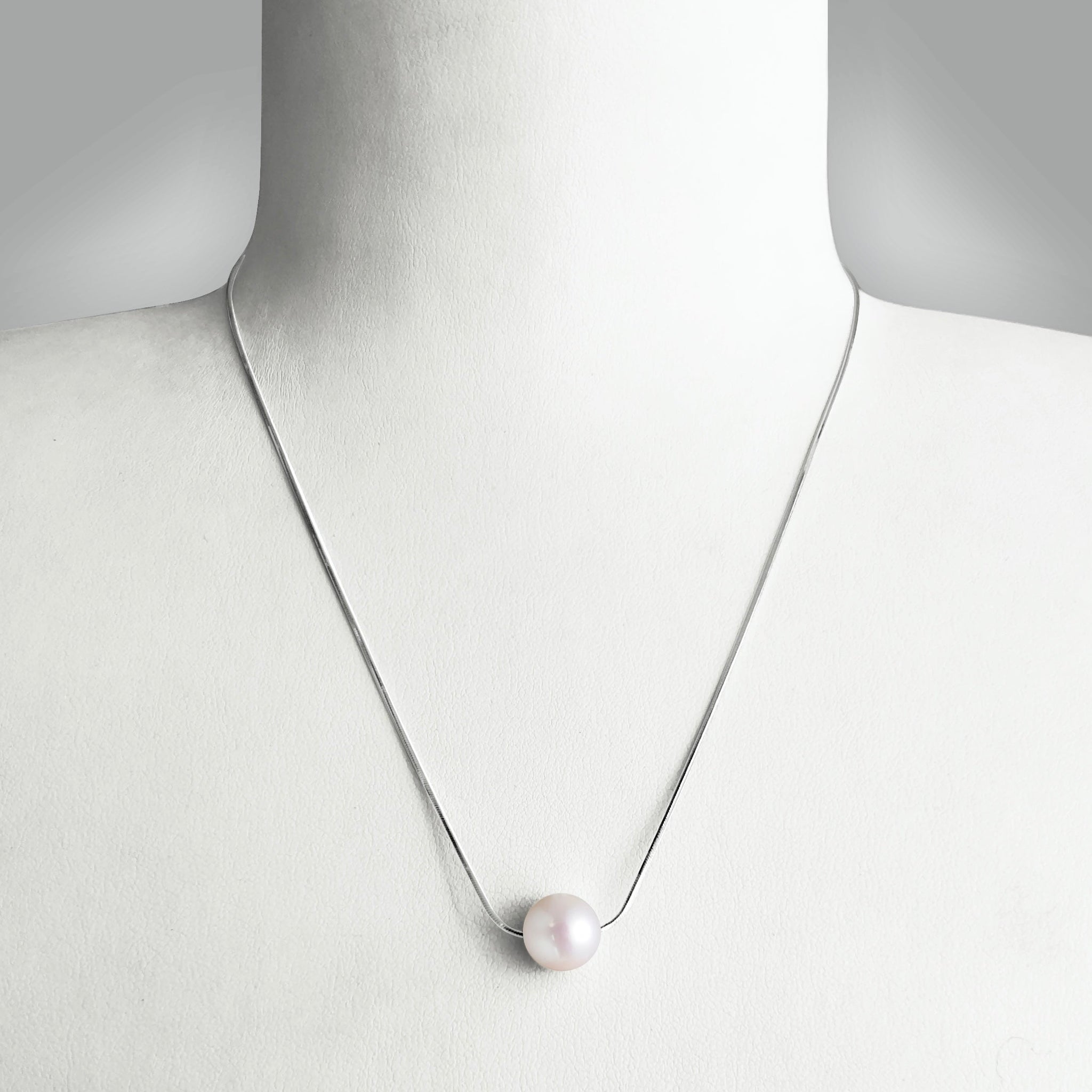 Collier 46cm Perles de Culture d'Eau Douce Pendentif Chaîne Argent 925