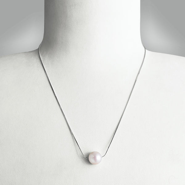 Collier Serpentine Perle en Balançoire (9.5mm) - Neige - 46 cm